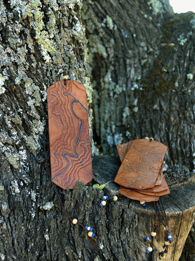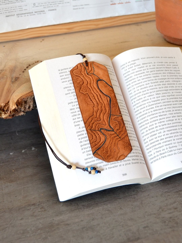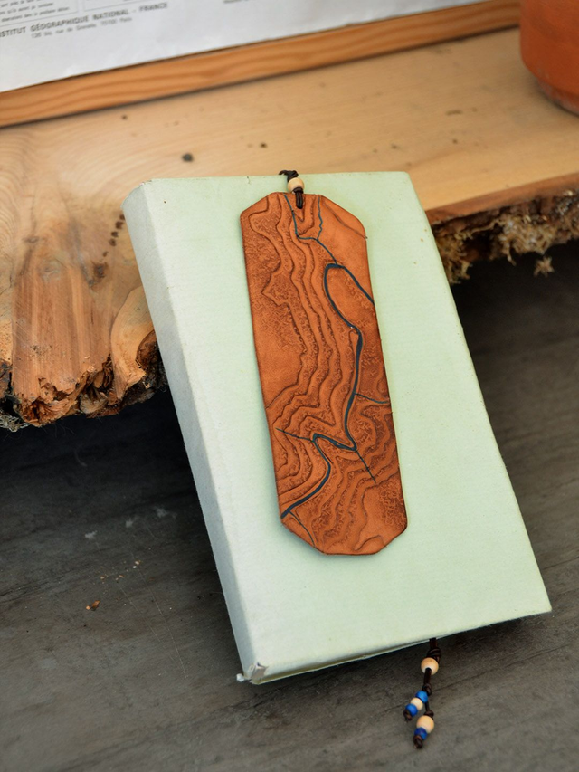Ce marque-page en cuir représente les gorges du Tarn, De Queyzac à Montbrun à Queyzac. Il peut former un duo avec le modèle Le Single.